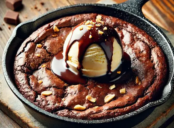 • The skillet brownie is a unique twist on traditional brownies, baked in a skillet for a rustic, family-style dessert. Originating in American cuisine, the skillet brownie has gained popularity for its simplicity and versatility. It combines the best of both worlds: the chewy edges and gooey center of a brownie with the presentation appeal of a skillet bake. Often served warm and topped with ice cream or whipped cream, the skillet brownie is perfect for sharing at the table, making it an ideal dessert for family dinners, special occasions, or any time you’re craving a rich chocolate treat.