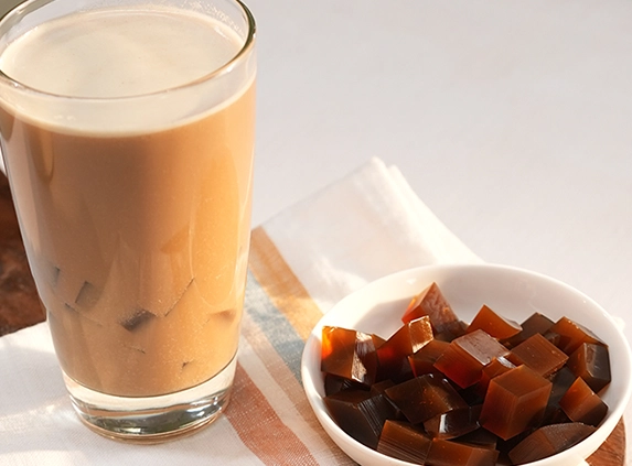 Take the set coffee jelly and cut into small pieces.
