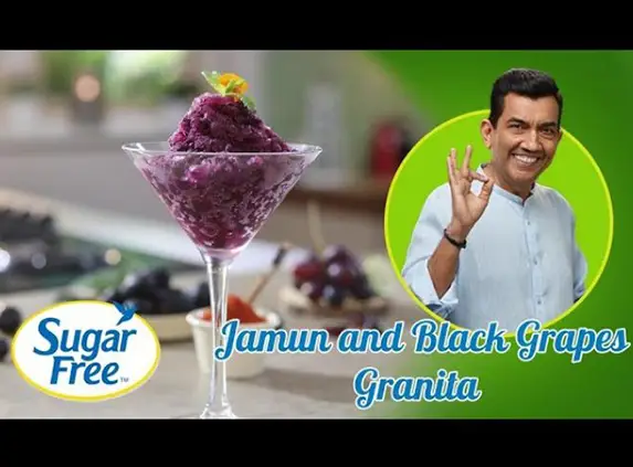 • The addition of spices like pink salt, roasted cumin powder, and red chili powder adds an exciting contrast to the natural sweetness of the fruits. The tangy notes of the jamun and the sweetness of black grapes complement each other beautifully, while the Sugar Free Green serves as a perfect zero-calorie sweetener, ensuring you can enjoy the treat without worrying about added sugars.