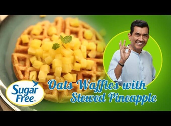 For all you Waffle-maniacs out there, today’s recipe is going to be a treat! Try this one out for a slurpy sweet breakfast, or any time of the day to satisfy your sweet cravings. Nothing defines a nice Sunday brunch better than the warm, toasty, sweet aroma of freshly made waffles! That’s exactly what Chef Sanjeev Kapoor had in mind this week as he whipped up this crispy, sweet delight to kick off your Sunday morning with a bang. And for those of you who’re looking to stay on course with their diet plan on the weekend as well, you’ll be happy to know that this recipe calls for ABSOLUTELY NO SUGAR! That’s because this recipe is sweetened by Sugar Free Green – a sweetener made from 100% Natural Stevia Leaves!