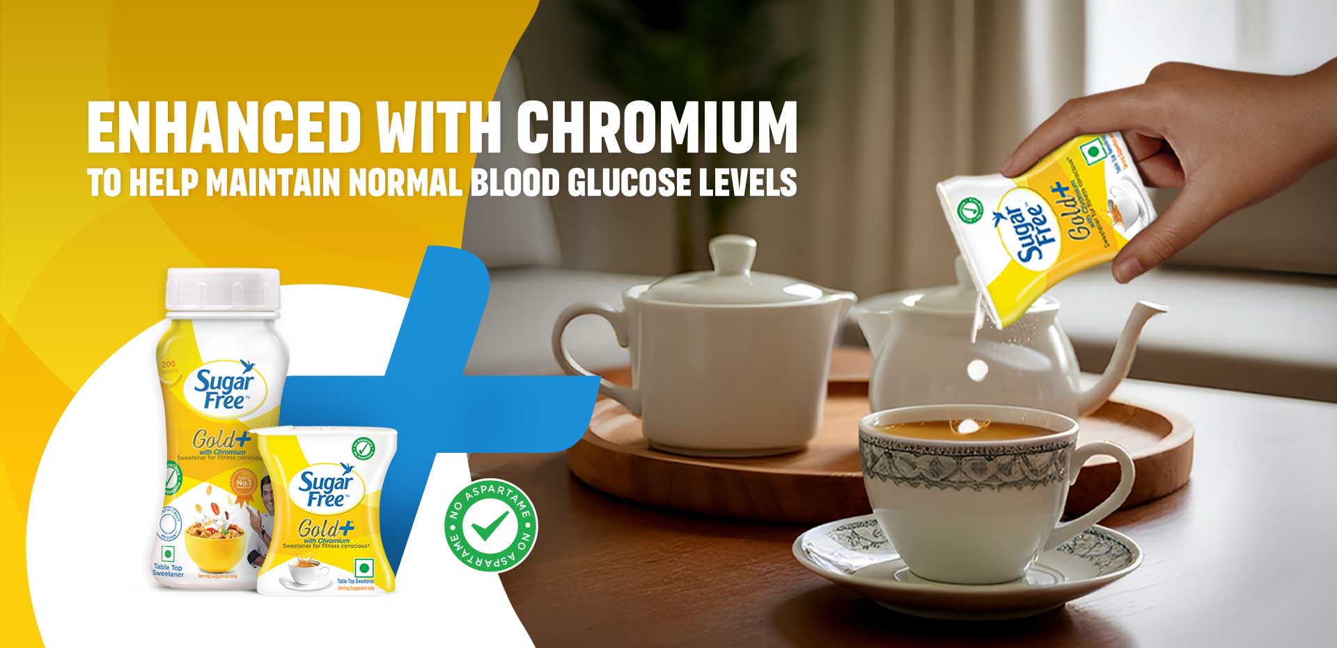 Sugar Free Gold Plus is a Low-calorie, zero-glycemic index and no-carbs sugar-free sweetener. Enhanced with chromium it supports the maintenance of normal blood glucose levels while delivering the sweetness of sugar without any compromise on health.