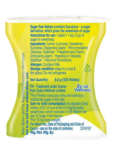 A pack of 500 Sugar Free Natura pellets are priced at Rs 310.
